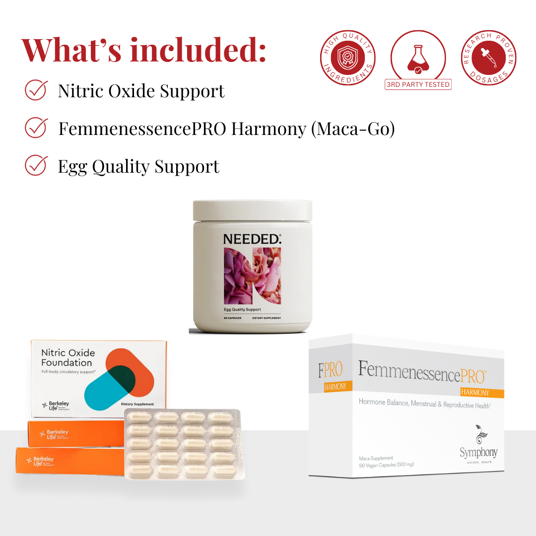 The best nutrients to support egg quality, and crucial nutrients to support blood flow to the uterus and ovaries, as well as mild optimization of hormones since hormonal imbalances can contribute to poor egg quality.